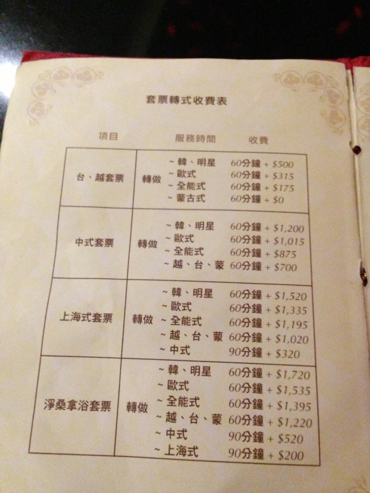 見方としては、台越式クーポンを持ってる人が、韓国・スター級の女の子を指名すると、別途500HKDかかります。ヨーロッパ人は315HKDって感じです。