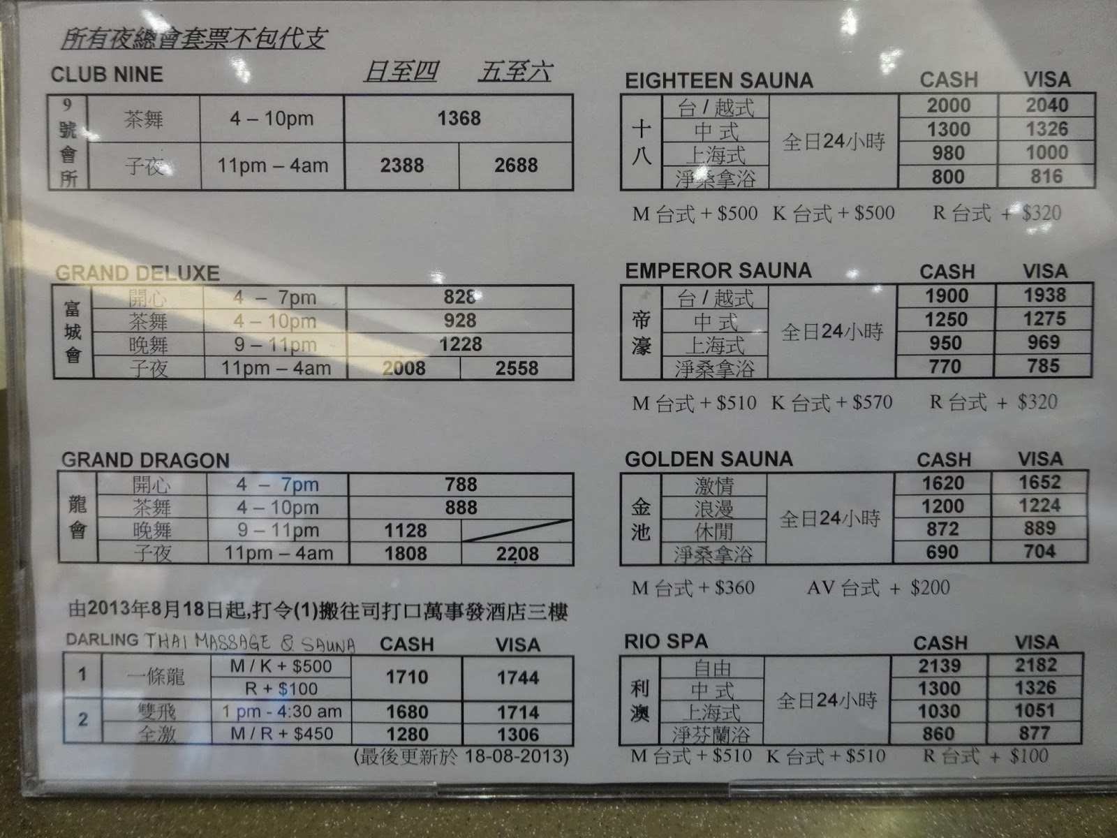 一番下の468HKDというのは、サウナの入場料です。スター級とか女の子とやる際の料金には、このサウナ代の468HKDは含まれています。