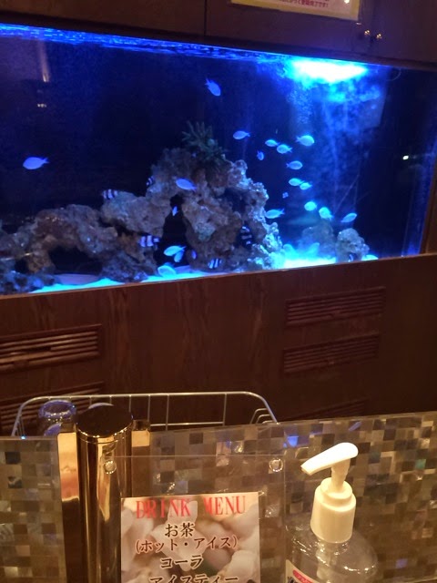 目の前には、大きな水槽があり、あいかわらず熱帯魚たちが優雅に泳いでいます。